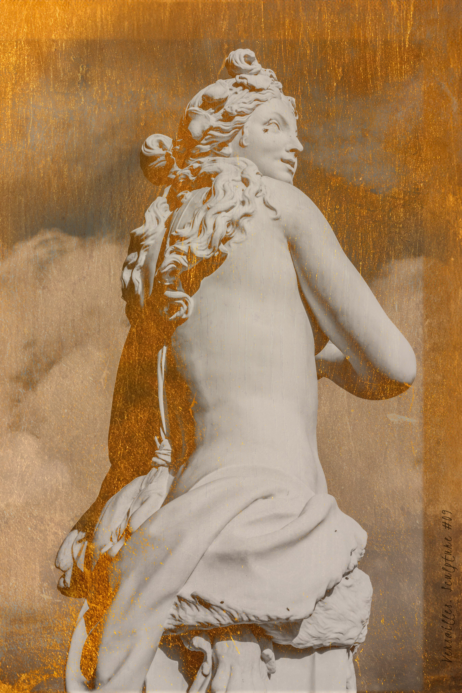 This collection of photographs, showcasing the statues of Versailles Park with a golden, oxidized daguerreotype effect, is an exquisite choice for interior decoration. The rich golden patina and the timeless subject matter not only enhance the aesthetic appeal of any type of space but also reflect the owner’s refined taste and openness to experimental art forms.