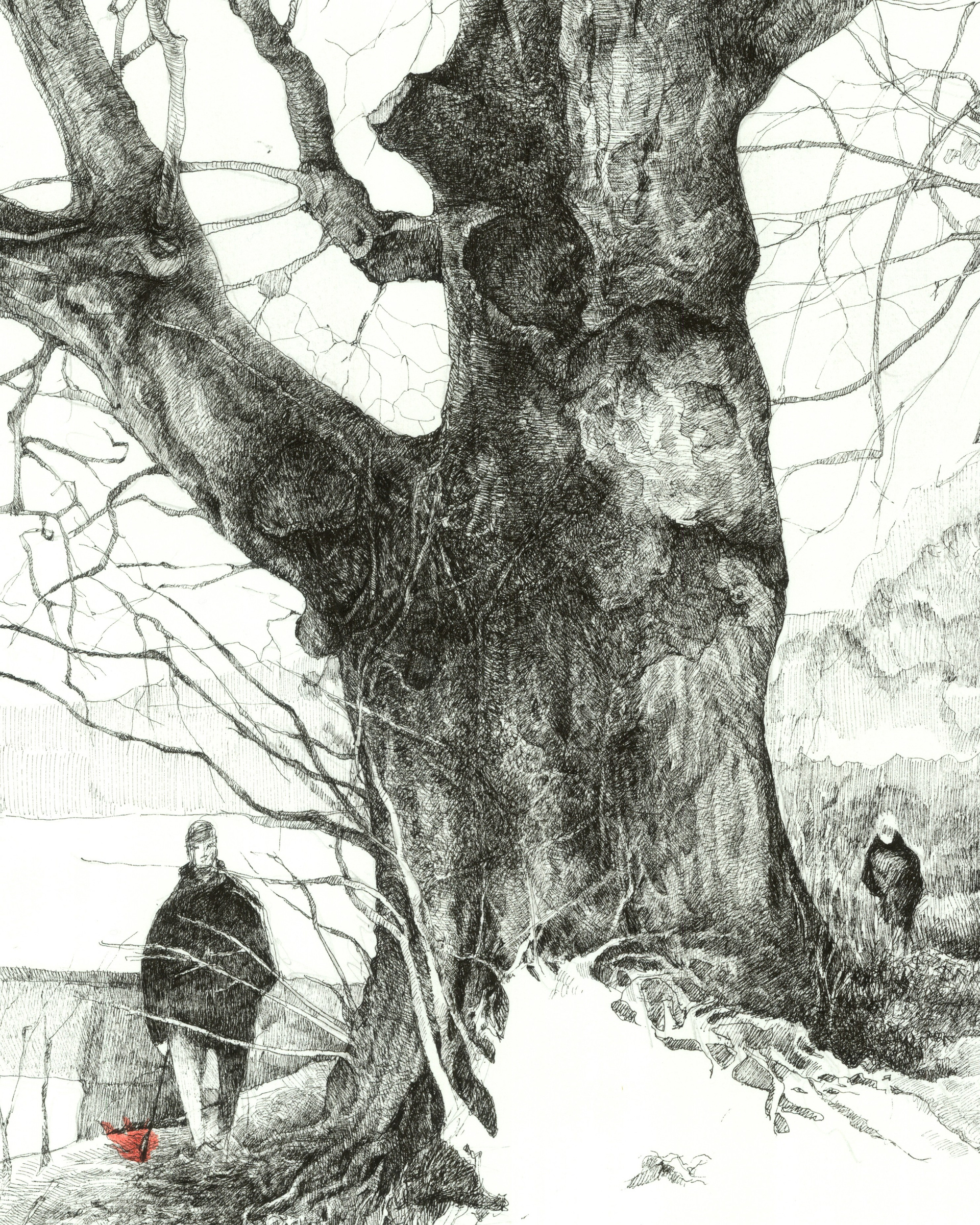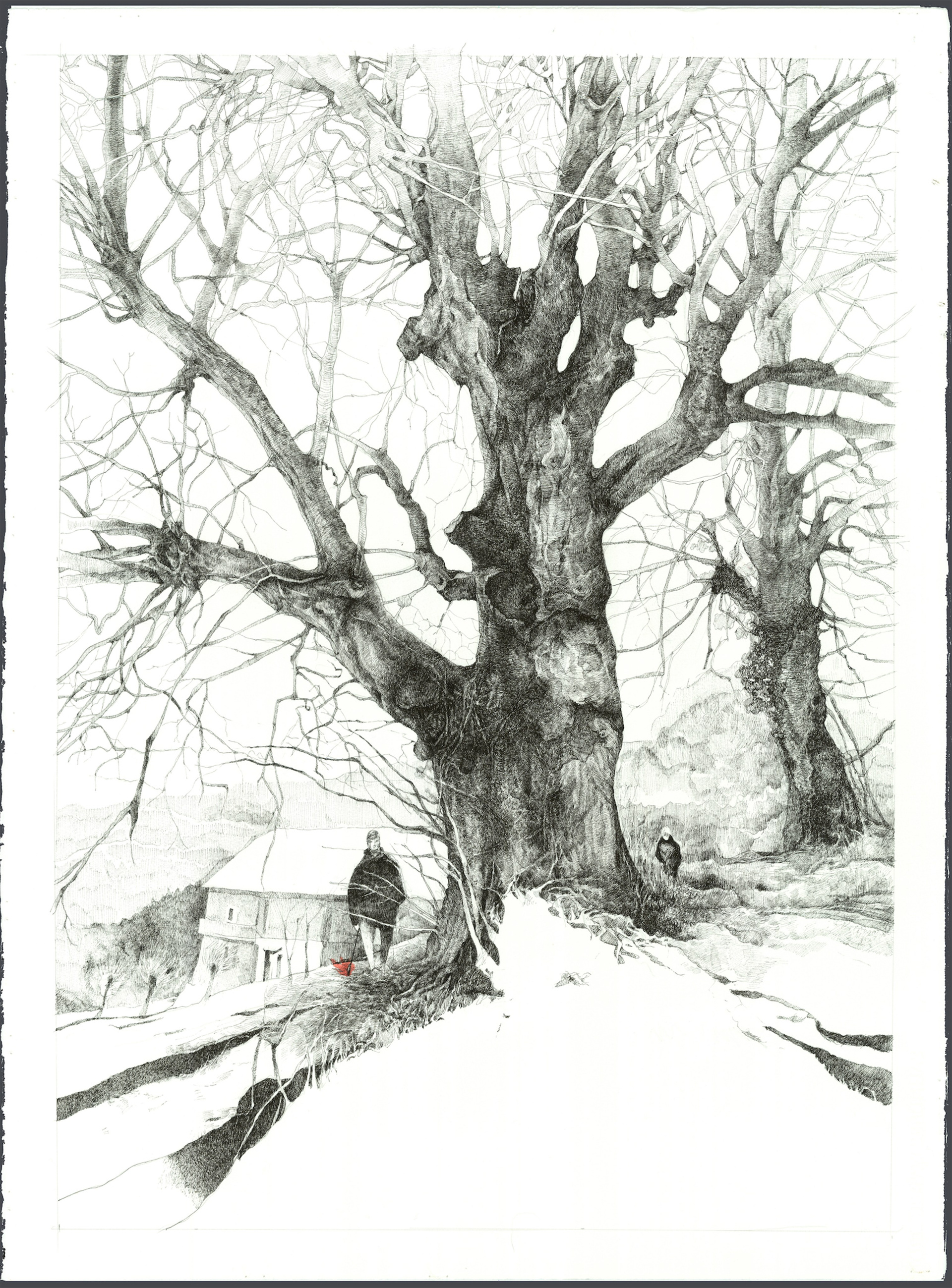This drawing is more than a visual experience; it is an invitation to explore the countless stories and emotions that have unfolded beneath the tree branches.
